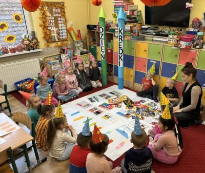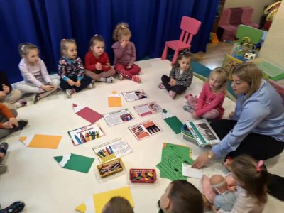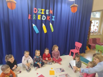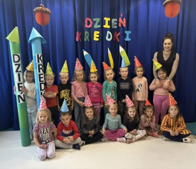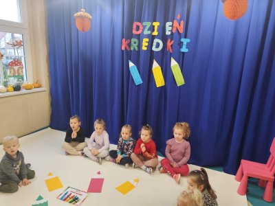 Dziś w naszym przedszkolu nasze dzieciaczki obchodziły " DZIEŃ KREDKi". Odbywały się zabawy z kredkami w roli głównej! Przedszkolaki brały udział w zabawach muzyczno- ruchowych przy piosence pt." Kolorowe Kredki". Dzieci poznały rodzaje kredek, tworzyły zbiory kredek według kryterium koloru, kształtu, wielkości. Na koniec nasze " KREDKI" wykonały duże kredki z wydzieranek z kolorowego papieru, które ozdobiły naszą salę