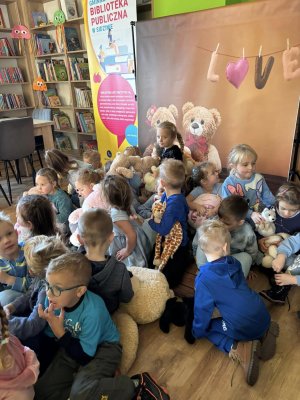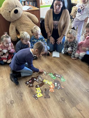 Z tej okazji w dniu 20.11.2022 r. przedszkolaki z naszego przedszkola uczestniczyły w obchodach "Światowego Dnia Pluszowego Misia". Każde dziecko przyszło do przedszkola ze swoim "milutkim przyjacielem". Można było zobaczyć misie małe, średnie, duże, brązowe, różowe, białe itd. Wszystkie były śliczne i wyjątkowe. W tym wesołym dniu na przedszkolaki czekało wiele ciekawych atrakcji. Następnie dzieci wraz z Paniami udały się do Biblioteki w Sidzinie, aby wspólnie z Panią Justynka Zbroją świętować ten dzień. Dzieci wysłuchały bajki o misiu, układały puzzle, a także zostały zaproszone do wspólnej zabawy ze swoimi misiami, poznały również historię ich święta i bawiły się do znanych misiowych przebojów.