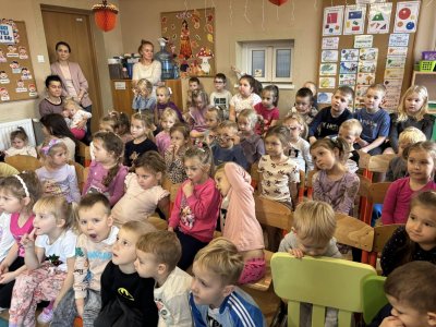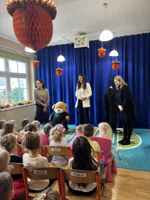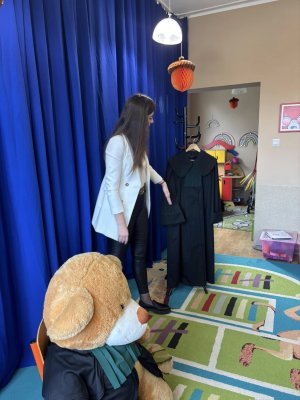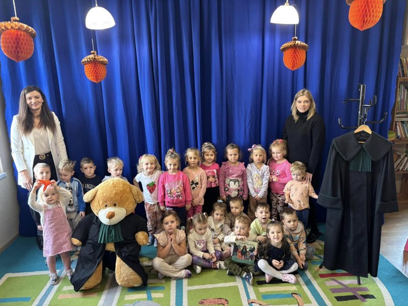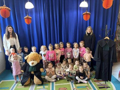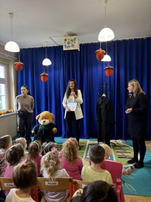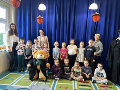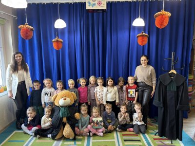 W środę 27 listopada gościliśmy panią Kinga Rozmus, która jest adwokatem. Na samym początku wizyty pani Kinga przypomniała nam o prawach dziecka. Następnie dzieci posłuchały opowiadania „Leśne sprawy Misia Adwokata”. Na tej podstawie ustaliliśmy wspólnie, że głównym zadaniem adwokata jest udzielanie porad i pomocy prawnej. Przedszkolaki dowiedziały się, że toga jest strojem urzędowym, a kolory żabotów zależą od wykonywanego zawodu prawnika. Pani Kinga powiedziała, że są one szyte zgodnie z rozporządzeniem ministra sprawiedliwości. Każdy chciał przymierzyć togę i poczuć się przez chwilę jak prawdziwy adwokat. Dla wszystkich było to interesujące i pouczające spotkanie. Na zakończenie dzieci podziękowały Pani adwokat za wizytę i zrobiły kilka pamiątkowych zdjęć.
