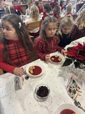 Czas upłynął w bardzo miłej, serdecznej atmosferze. Wszystkie dzieci czuły zbliżające się wielkimi krokami Święta Bożego Narodzenia.