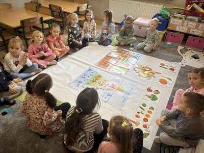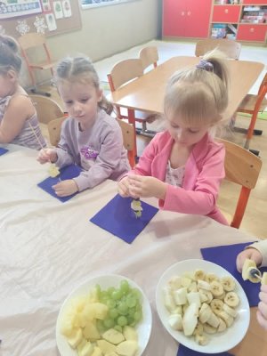 Głównym celem projektu jest wykształcenie u dzieci postaw prozdrowotnych, poprzez uczenie zasad zdrowego odżywiania oraz przekazywanie wiedzy na temat produktów służących zdrowiu i produktów dla zdrowia szkodliwych. Rolą projektu jest również uświadomienie związku pomiędzy żywieniem, a występowaniem wielu chorób i dolegliwości oraz podkreślenie roli codziennej aktywności fizycznej w profilaktyce zdrowotnej. Bardzo dziękujemy naszym Panią z kuchni za przygotowanie pysznych owoców do szaszłyków