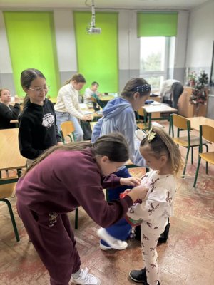 Pracownicy i dzieci chętnie wzięli w niej udział. Przedszkolaki zostały zapoznane z ideą WOŚP. Udział w akcji wzięli również uczniowie i nauczyciele ze szkoły. Wspólnymi siłami udało się zebrać piękną sumę.