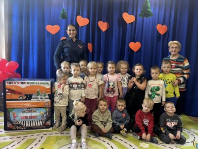 Dbając o bezpieczeństwo naszych przedszkolaków w przedszkolu, jak i w czasie wolnym w dniu 24.01.2025. odbyło się spotkanie profilaktyczno-edukacyjne z Panią policjantką mł.asp.Martą Kublin-