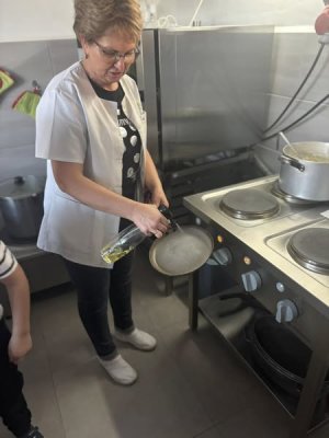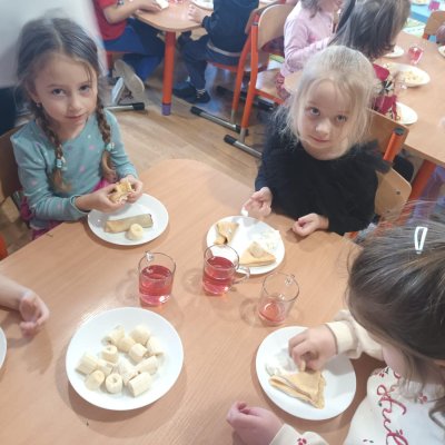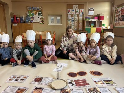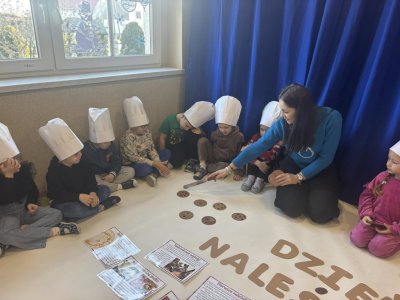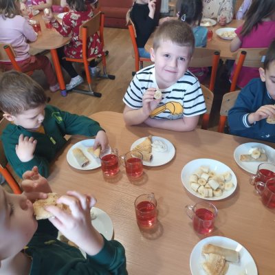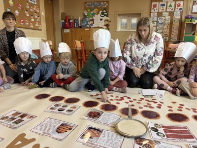 03 lutego br. w naszym przedszkolu obchodzony był Dzień Naleśnika. Dzieci w tym dniu poznały wiele ciekawostek na temat tych smakołyków. W wesoły i prosty sposób poznały czynności związane z przyrządzaniem ciasta naleśnikowego. Pojawiły się zabawy i zajęcia powiązane z naleśnikowym zadaniami. Dzieci wykonywały zadania matematyczne, a także komponowały naleśniki wg własnego pomysłu. Zdecydowanie najprzyjemniejszym i najbardziej wyczekiwanym momentem całego dnia był obiad, gdzie dzięki naszej wspaniałej kuchni - Pani Reni wszyscy mogli wykorzystać zdobyte umiejętności w praktyce i skosztować przepysznych naleśników. Było bardzo smacznie. Dzieci również w tym dniu mogły zapoznać się z zawodem kucharza realizując kolejne kierunki preorientacji zawodowej.