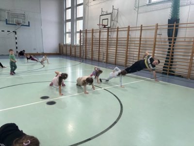 Dzieci z zaangażowaniem uczestniczyły w zabawach i chętnie wykonywały poszczególne zadania. Bardzo podobały im się zajęcia na sali gimnastycznej. Bardzo dziękujemy Panu Jankowi za przygotowanie i przeprowadzenie bardzo aktywnej lekcji. Było fantastycznie.
