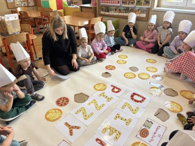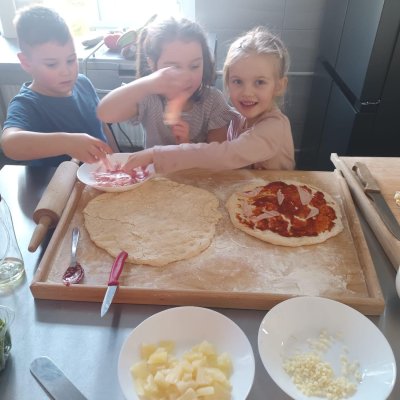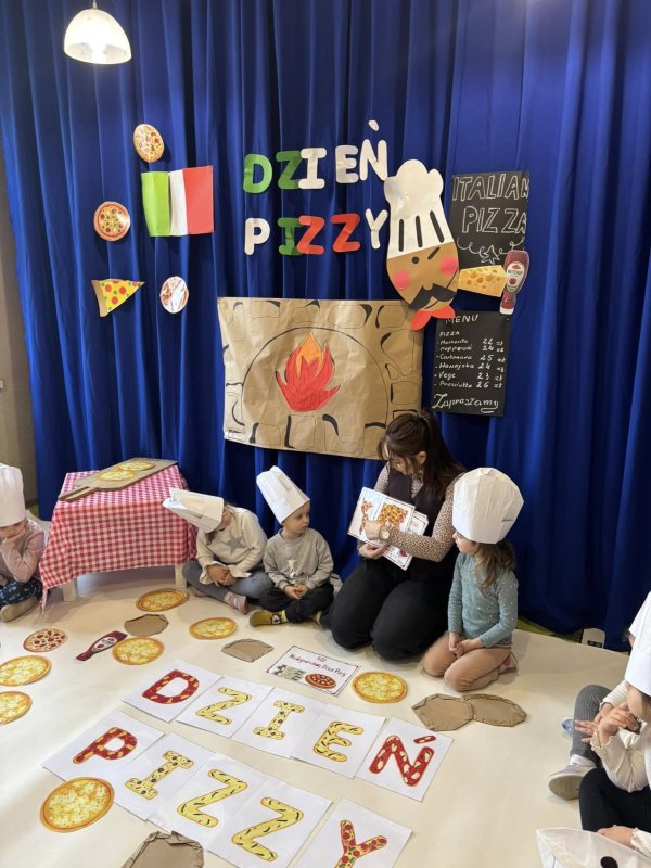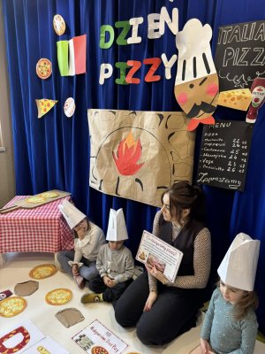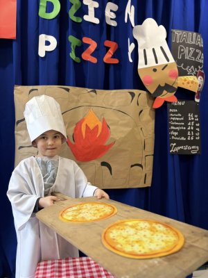 Dnia 10 lutego u nas w przedszkolu obchodzony był „Międzynarodowy Dzień Pizzy”. Tego dnia sala naszego przedszkola zamieniła się w prawdziwą, włoską pizzerie. Na zajęciach dzieci miały okazję zobaczyć jak powstaje ten kultowy włoski placek i jakich składników potrzeba, aby go przygotować. Poznały historię jego powstania oraz dowiedziały się, z którego kraju pochodzi. Dzieci w trakcie zabaw świetnie się bawiły, poszukiwały niezbędnych produktów ujętych na liście zakupów i wkładały je do sklepowego koszyka, układały „pizzowe” puzzle. Przedszkolaki miały także możliwość stworzenia w grupach kolorowych, smakowicie wyglądających placków, używając do tego przeróżnych materiałów oraz stosując różne techniki plastyczne. Pomimo, iż pizze te były papierowe, bardzo rozbudzały nasze apetyty. Dzięki Pani Alicja Dragan nasze przedszkolaki poznały przepis na pizzę i w praktyczny sposób go wykorzystały. Kulminacyjnym punktem tego wyjątkowego dnia było oczywiście zjedzenie przepysznej, domowej pizzy. Bardzo dziękujemy Pani Ali za przemiły dzień, cenna lekcje i cudowny dzień dla naszego żołądka. To był niezwykle smakowity dzień!