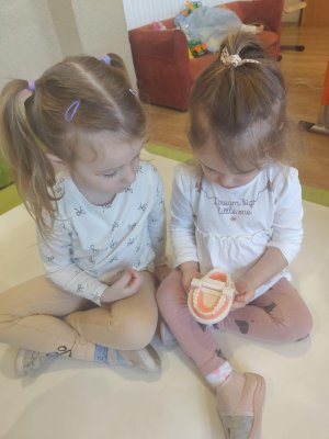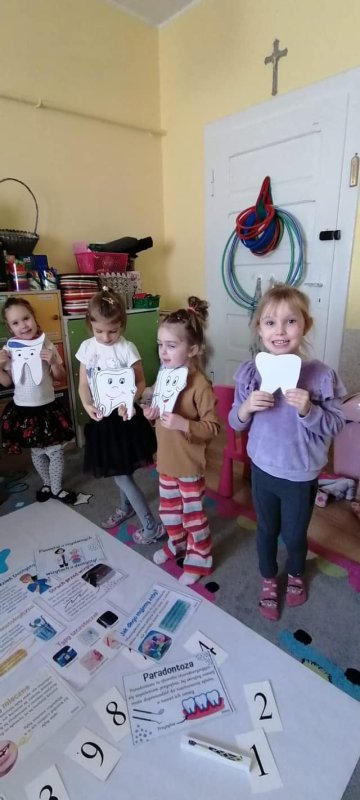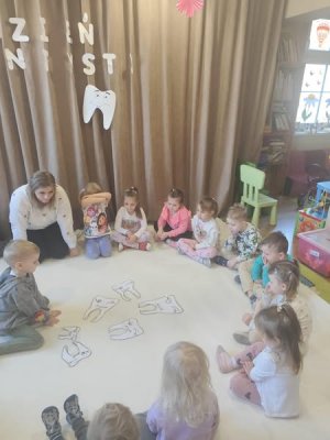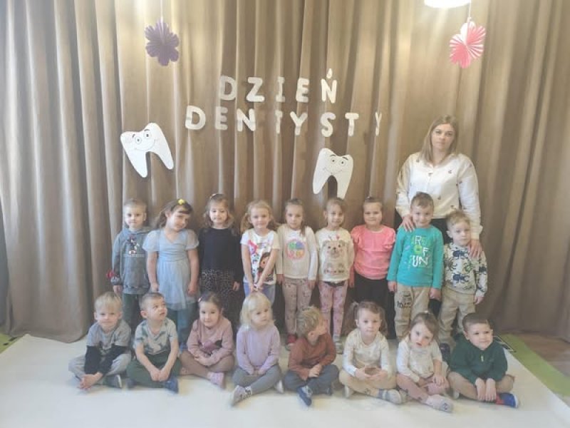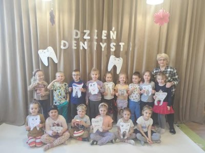 Dnia 5 marca obchodziliśmy w naszym przedszkolu "Dzień Dentysty". Przedszkolaki miały okazję dowiedzieć się jak dbać o higienę jamy ustnej, aby ząbki były zawsze zdrowe, a uśmiech błyszczał czystością. Zwrócono także uwagę dzieci na etapy mycia zębów oraz na systematyczne kontrolowanie stanu uzębienia. Podkreślono jak ważna dla zdrowych zębów jest dieta bogata w owoce i warzywa oraz produkty mleczne. Prowadzenie tego typu działań edukacyjnych ma na celu wdrożenie dzieci do codziennego szczotkowania zębów i dbania o higienę jamy ustnej ale również niwelowanie lęku i strachu przed wizytą u stomatologa.